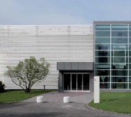 The CP-VENTIL-SLOT system consists of slabs anchored to the bearing structure by means of special crescent-shaped slots along the horizontal ribs of the slabs. Special stainless steel mechanical retaining clips are inserted inside these slots. These slots can be made on slabs with a thickness of at least 10.5 mm. The slabs are provided already with the slots but the recessed retaining clips are inserted in the groove of the slot and tightened to the bearing structure in the construction site. The number of slots in every single slab depends on the size of the slab and on the design loads on the façade. Normally, every slab is fastened by means of 4 slots. The bearing structure requires the use of vertical uprights, which are fastened to the wall by means of mechanical or chemical expansion plugs and slotted anchor brackets, which allow for the adjustment of the system and the thermal expansion of the various components. The distance between the vertical uprights is usually equal to the width of the slab plus the design joint; the front part of the vertical uprights is shaped to house the retaining clips, which are simply pressed down with the hands. Every slab can be disassembled simply by cutting the upper retaining clips using a grinder. These will be replaced with new clips after placing the previously removed slab on the lower retaining clips.
